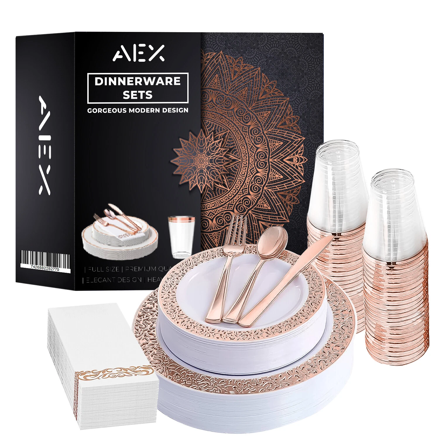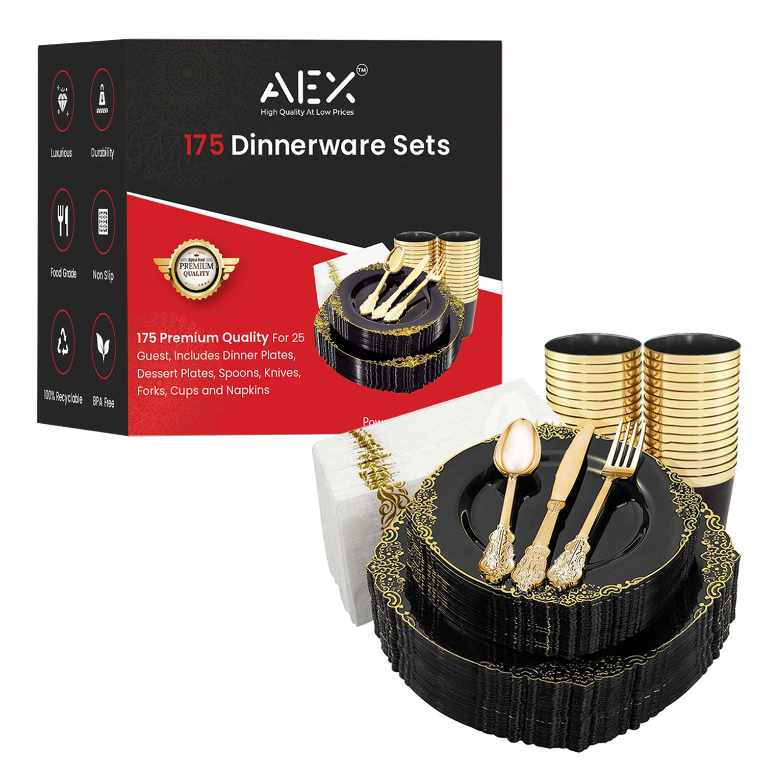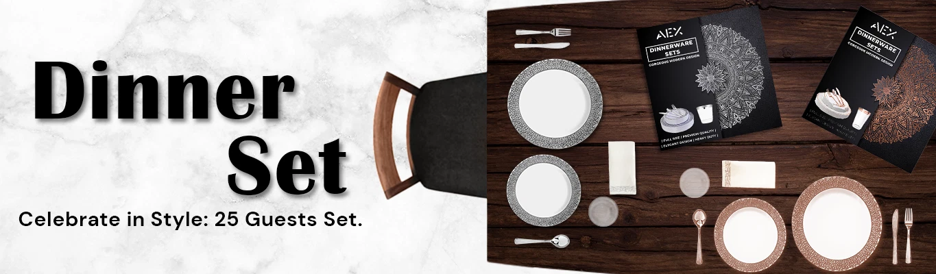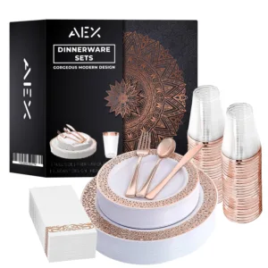 AEX 175-Piece Disposable Dinnerware Set for 25 People – Elegant and Convenient Dining Solution